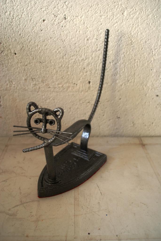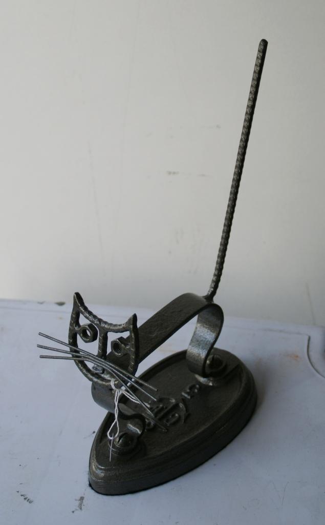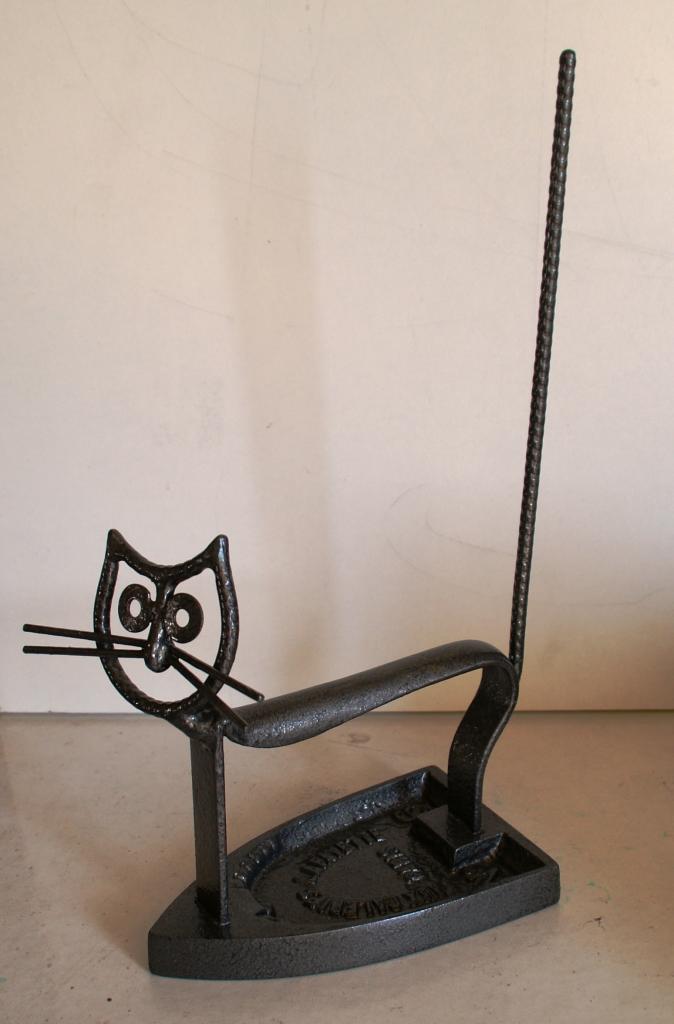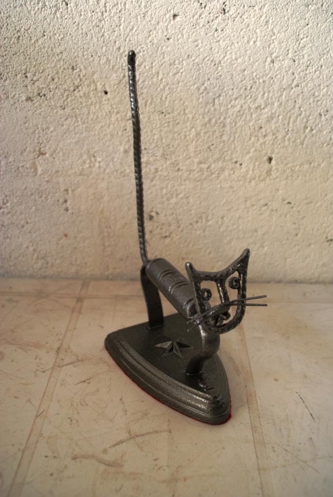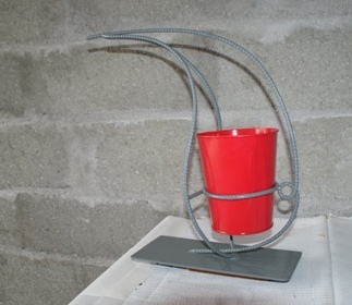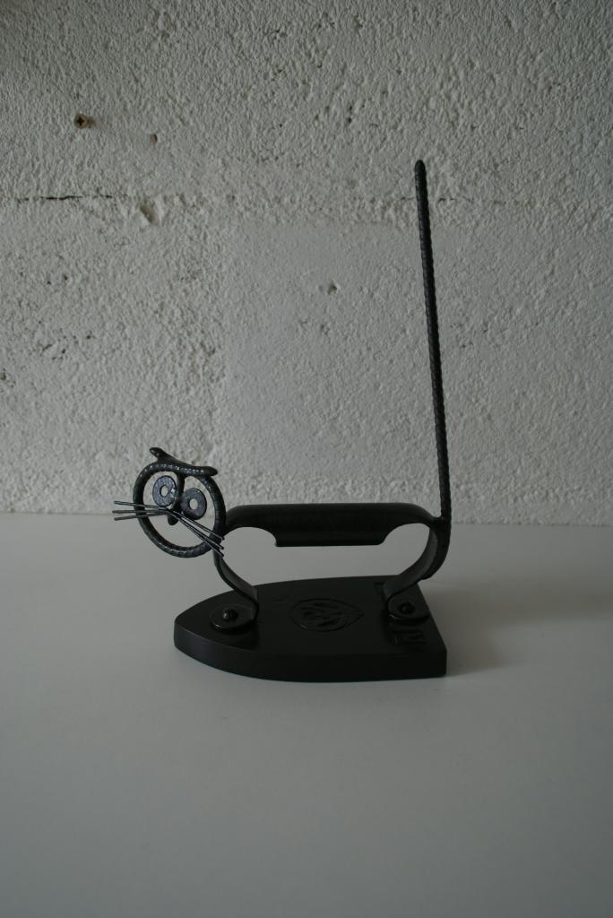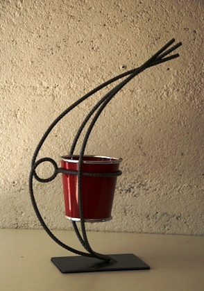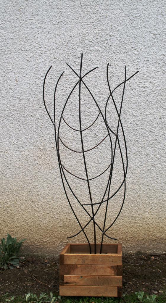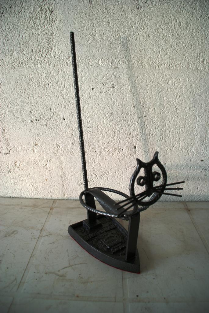 Realisé avec du fer à béton de 6 & 8 mm fixé sur soclede vieux fer à repasser