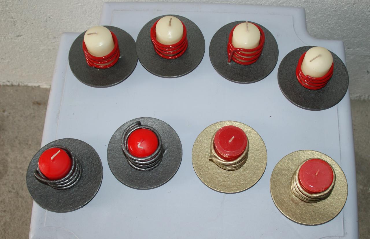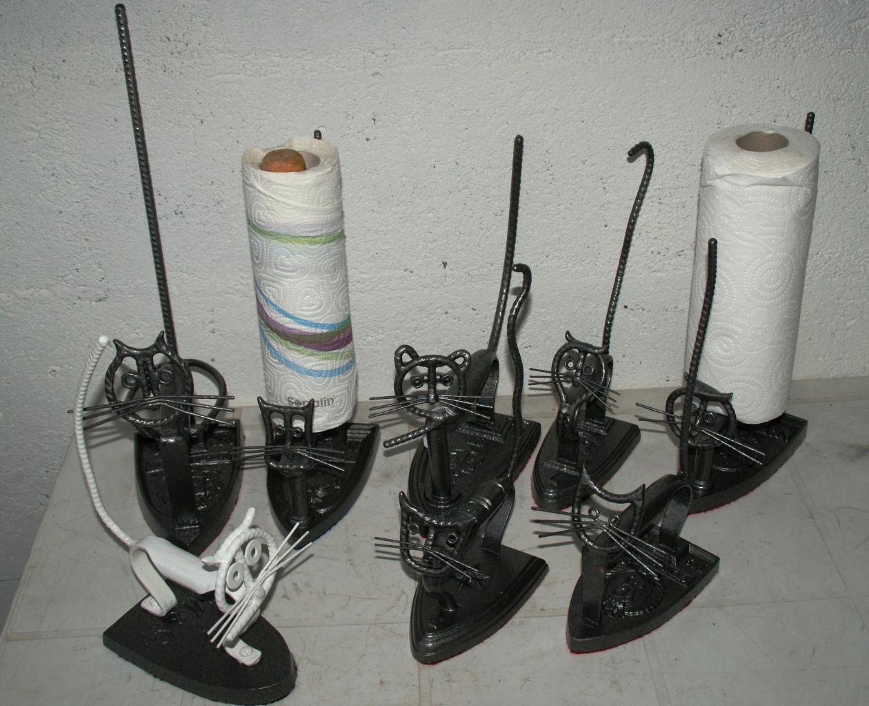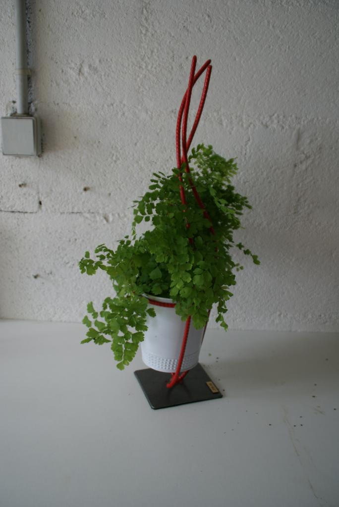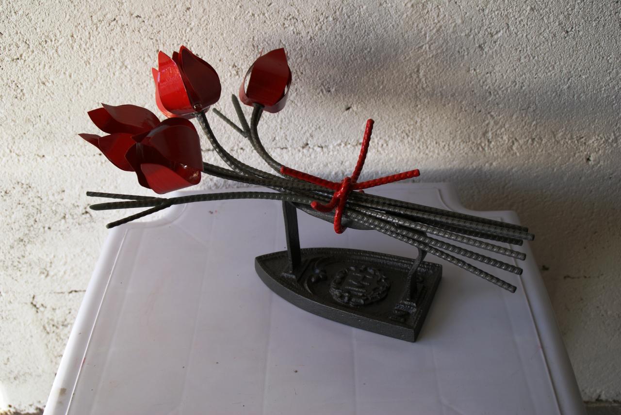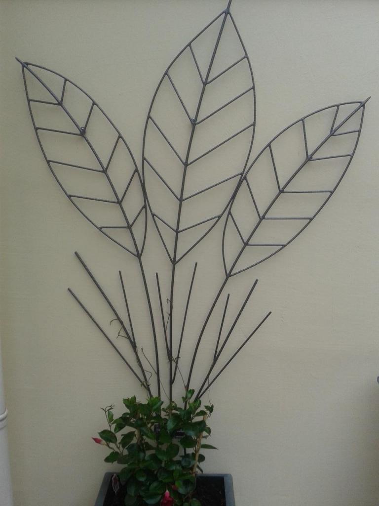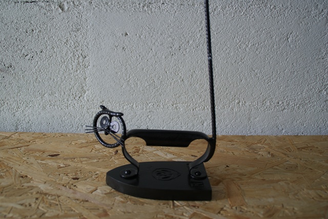 Realisé avec du fer à béton de 6 & 8 mm fixé sur soclede vieux fer à repasser