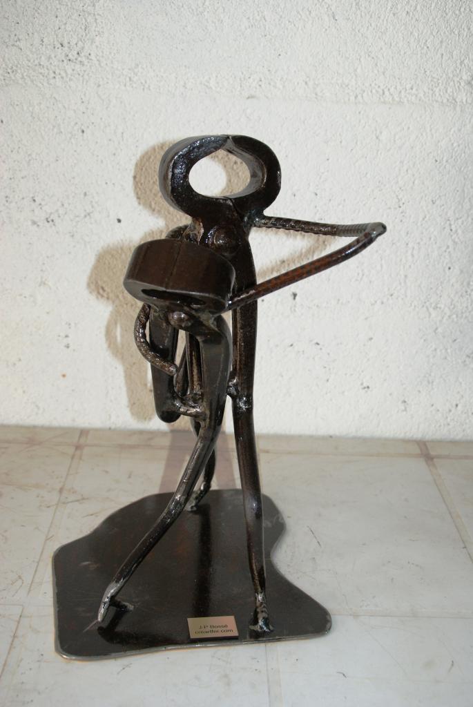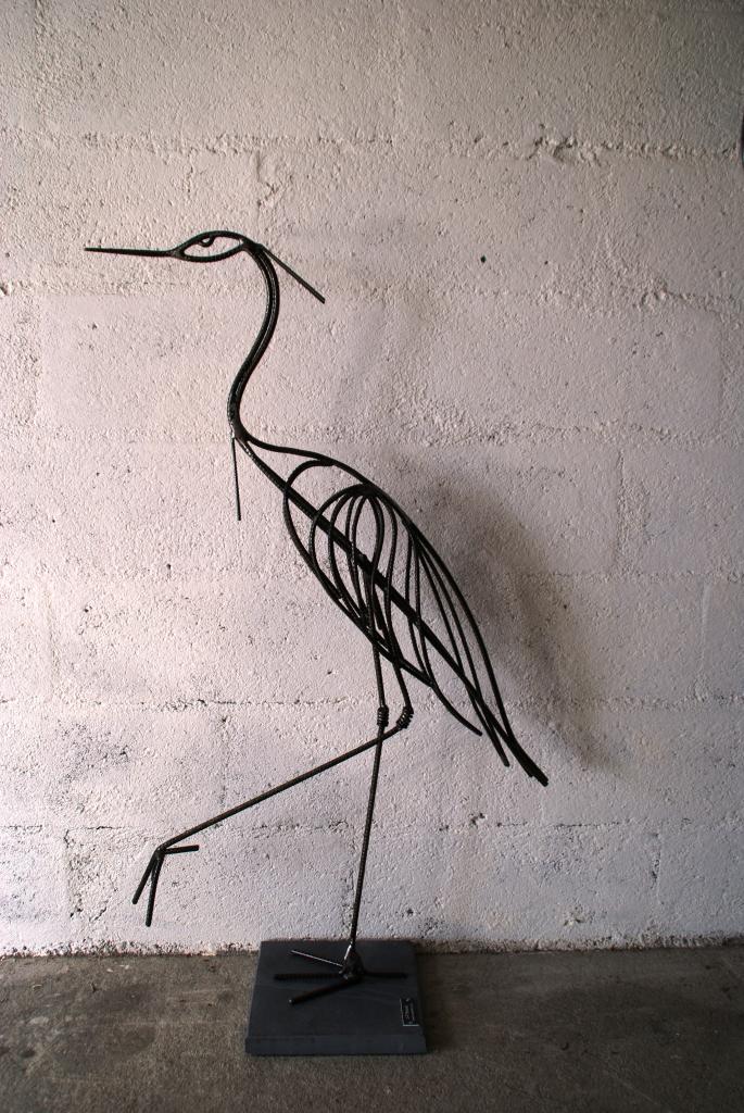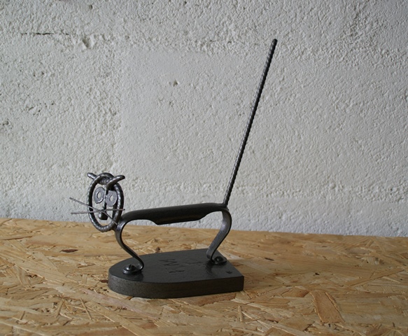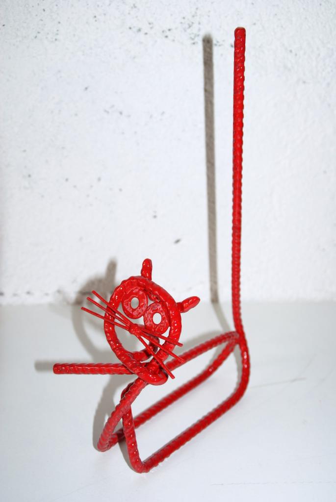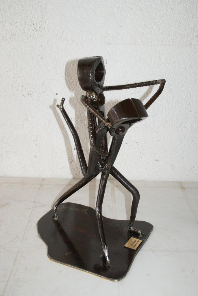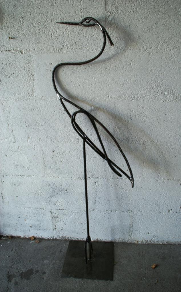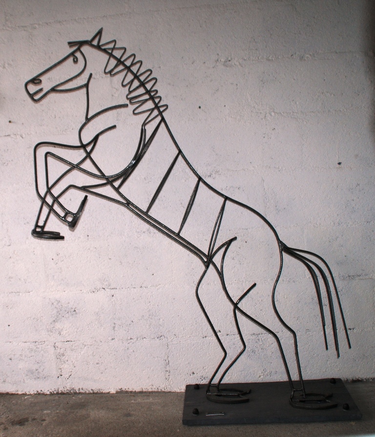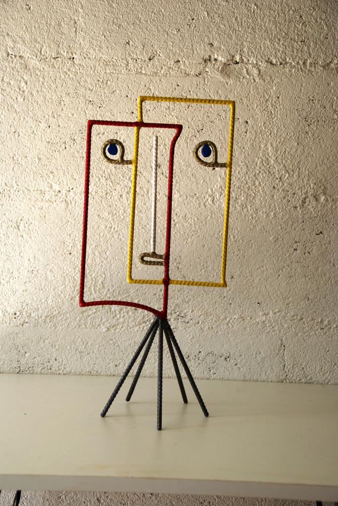 Réalisé avec du fer à béton de 8mm monté sur socle de 20 X 13cm. Haut totale 52cm, peinture noire. Prix: