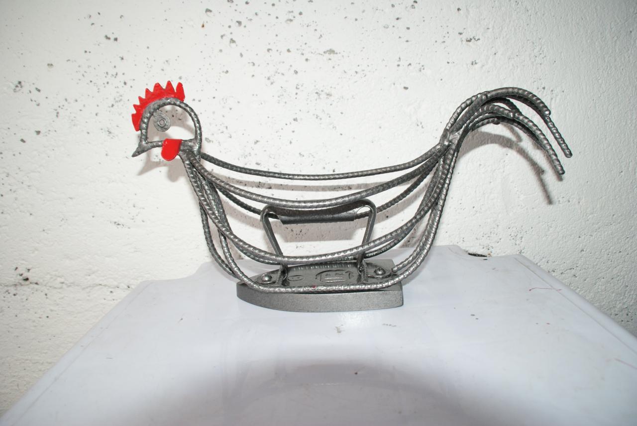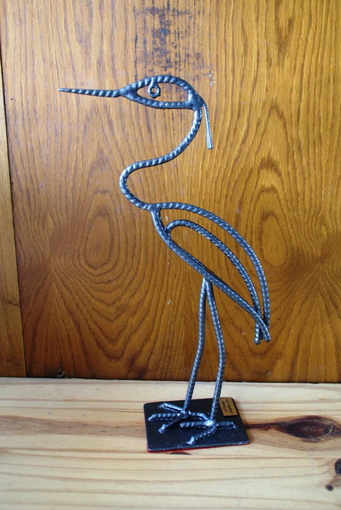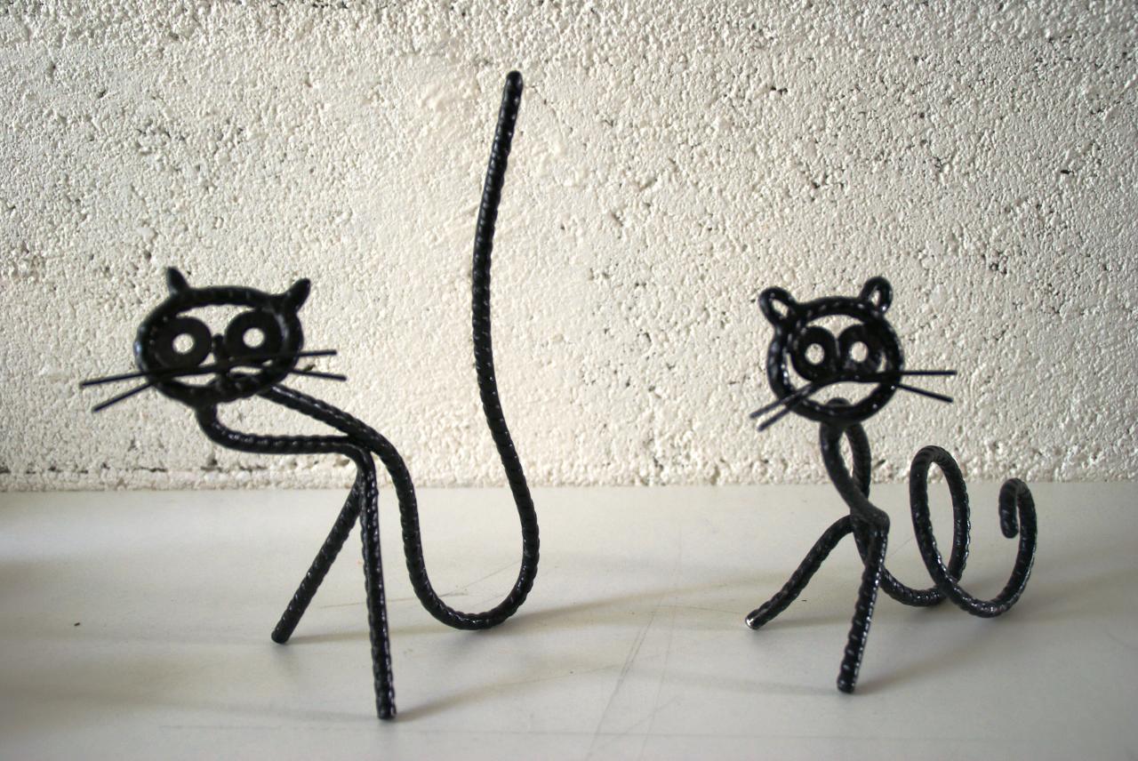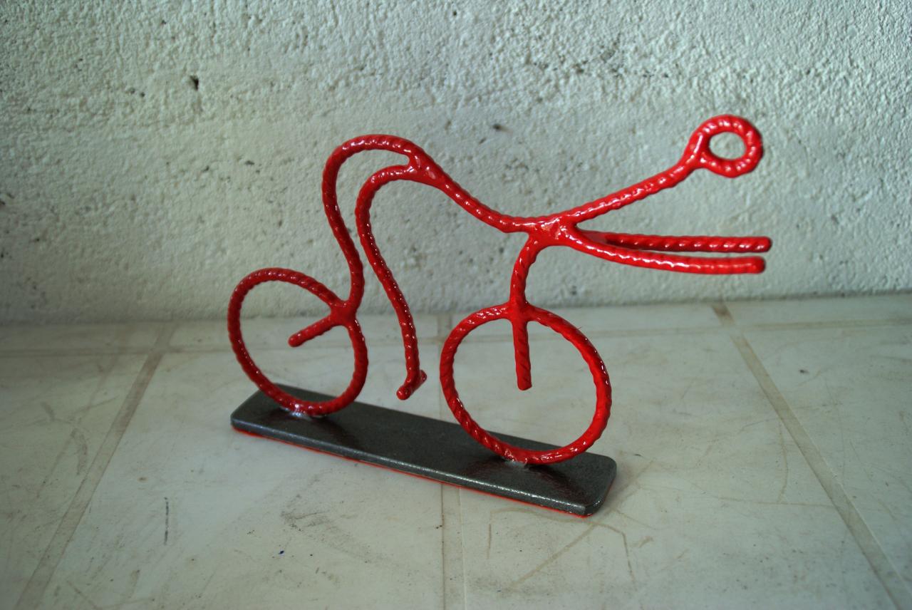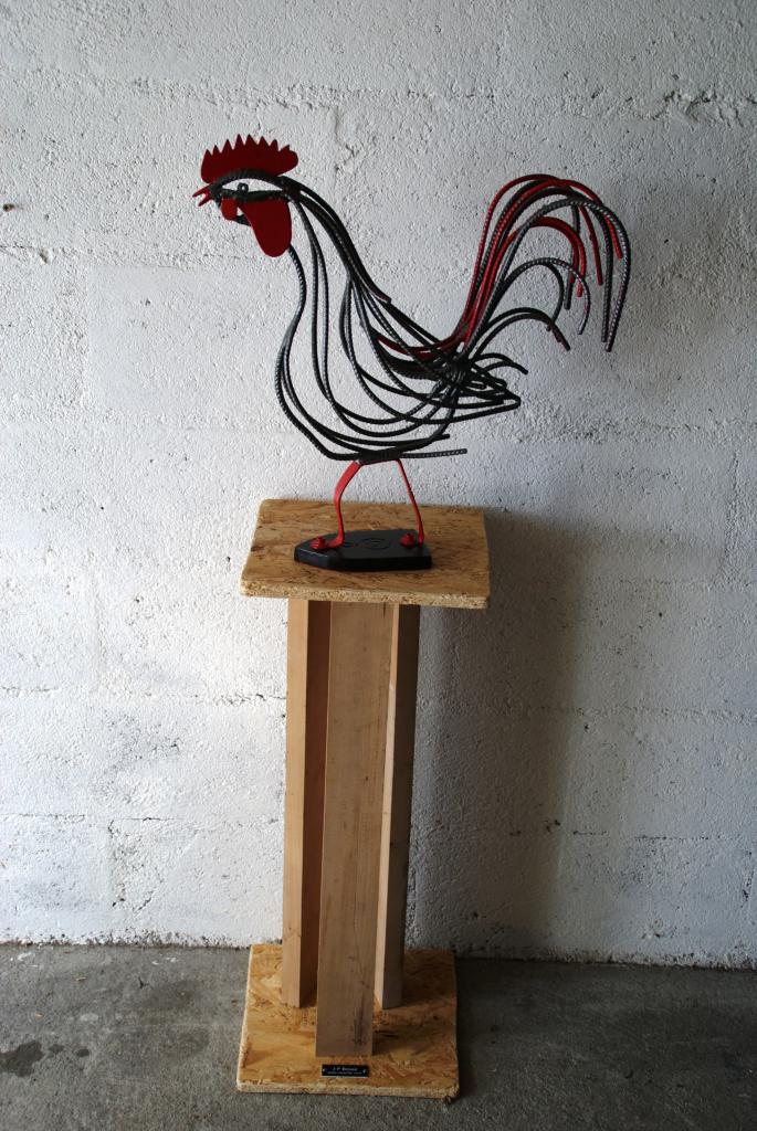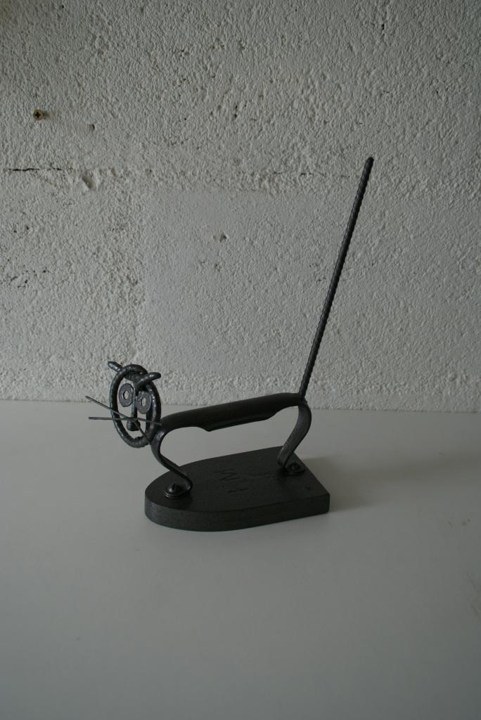 Réalisé avec du fer à béton de 8mm monté sur socle de 20 X 13cm. Haut totale 52cm, peinture noire. Prix: