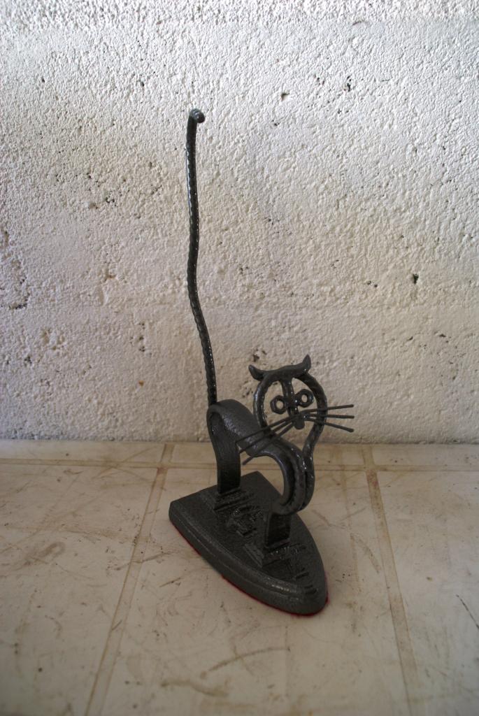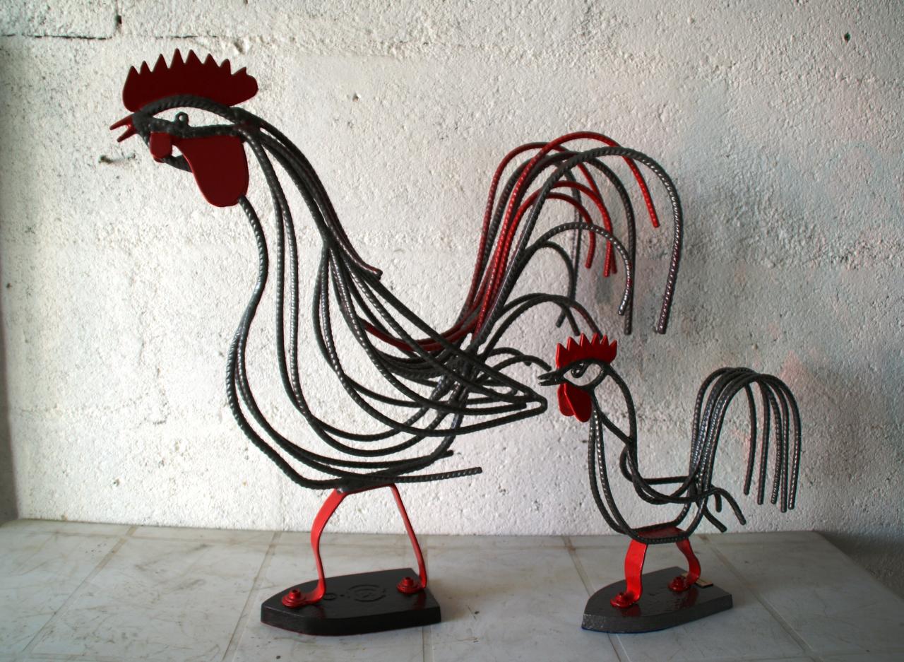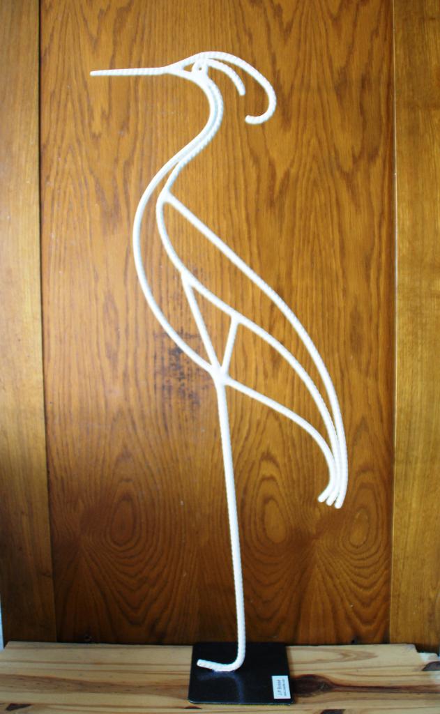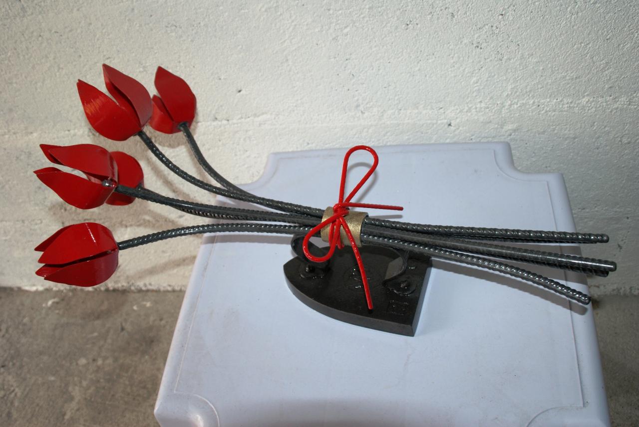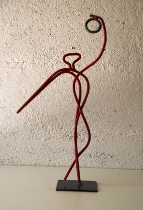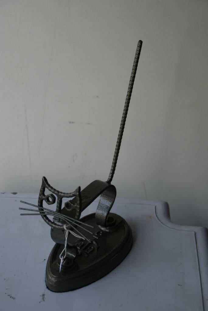 Réalisé avec du fer à béton de 8mm monté sur socle de 20 X 13cm. Haut totale 52cm, peinture noire. Prix:
