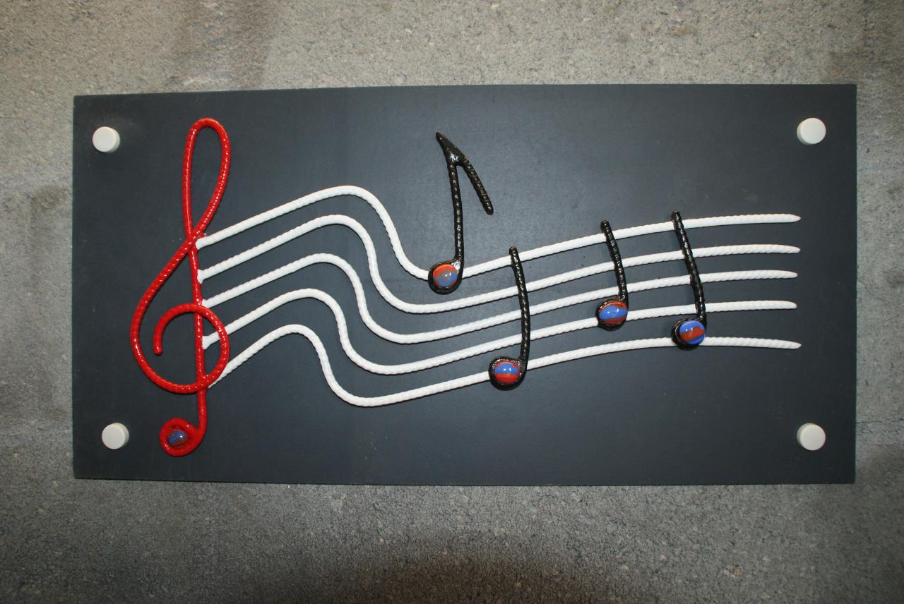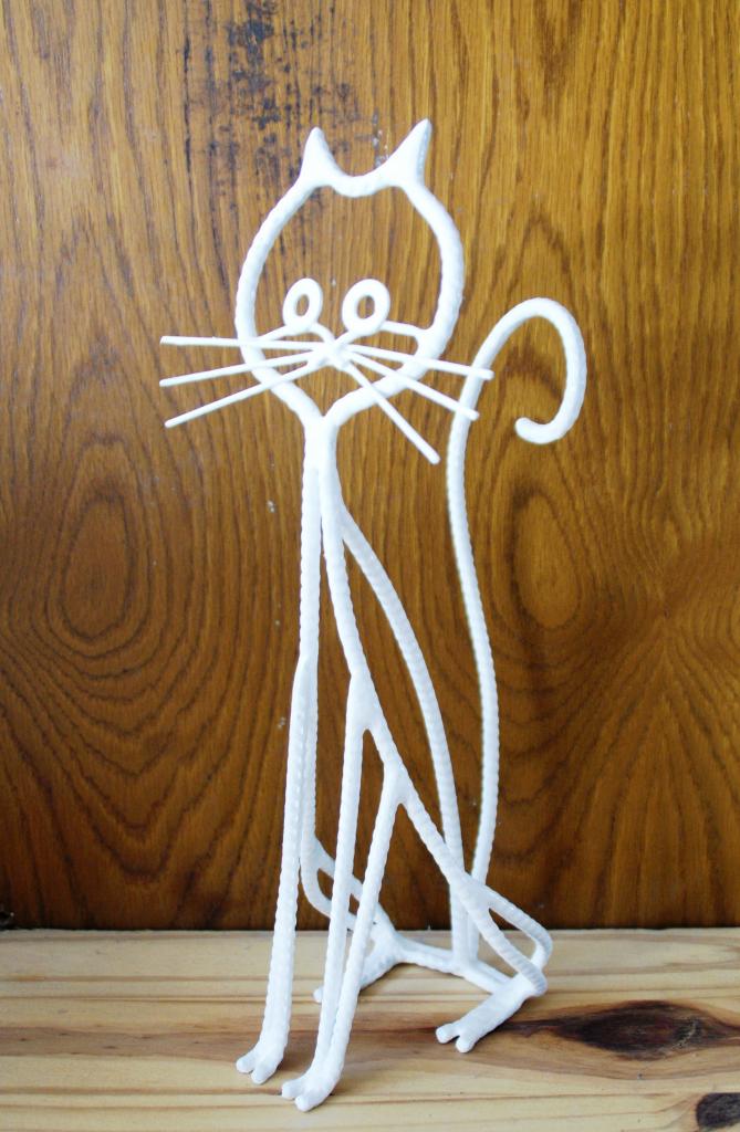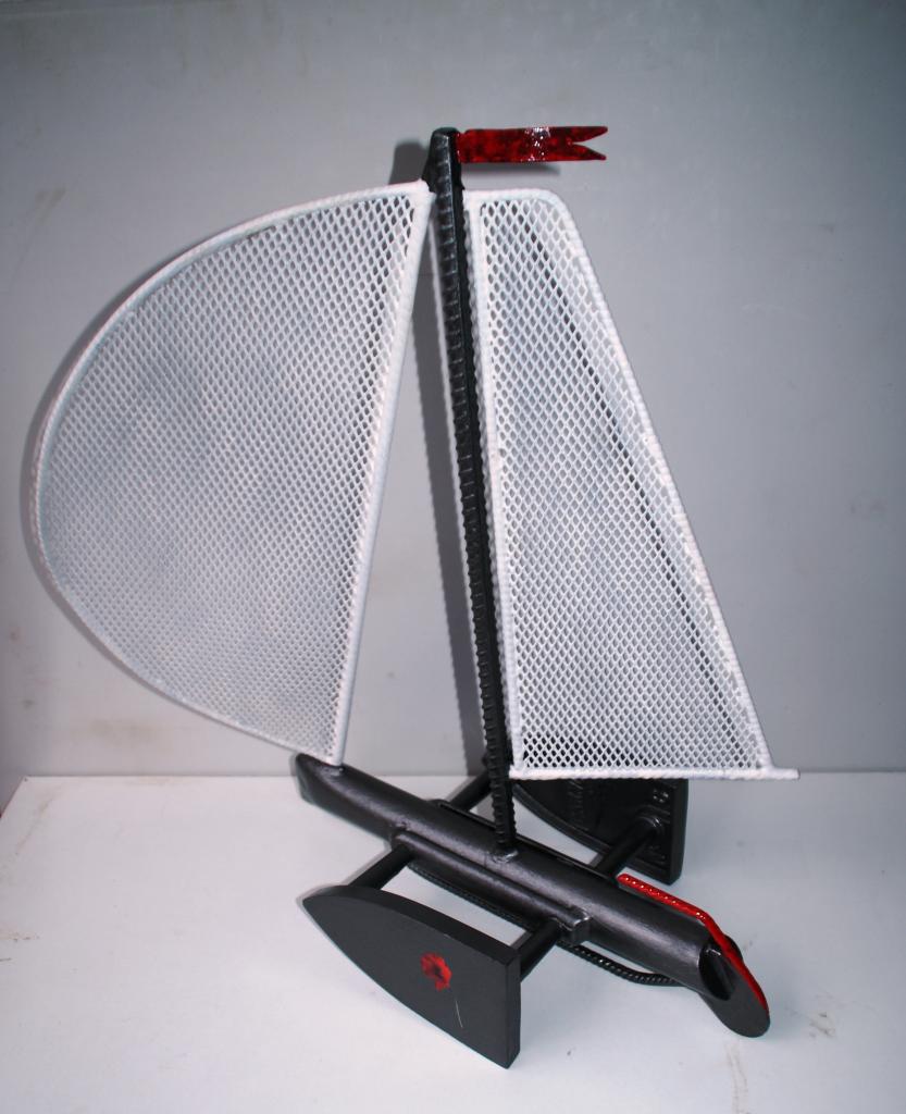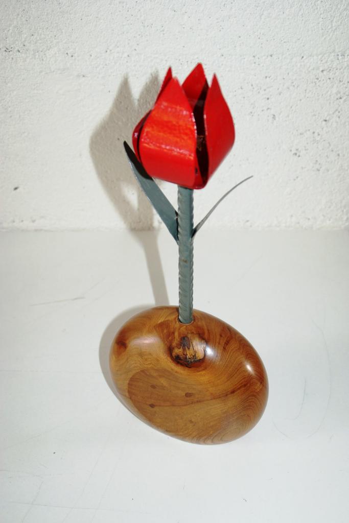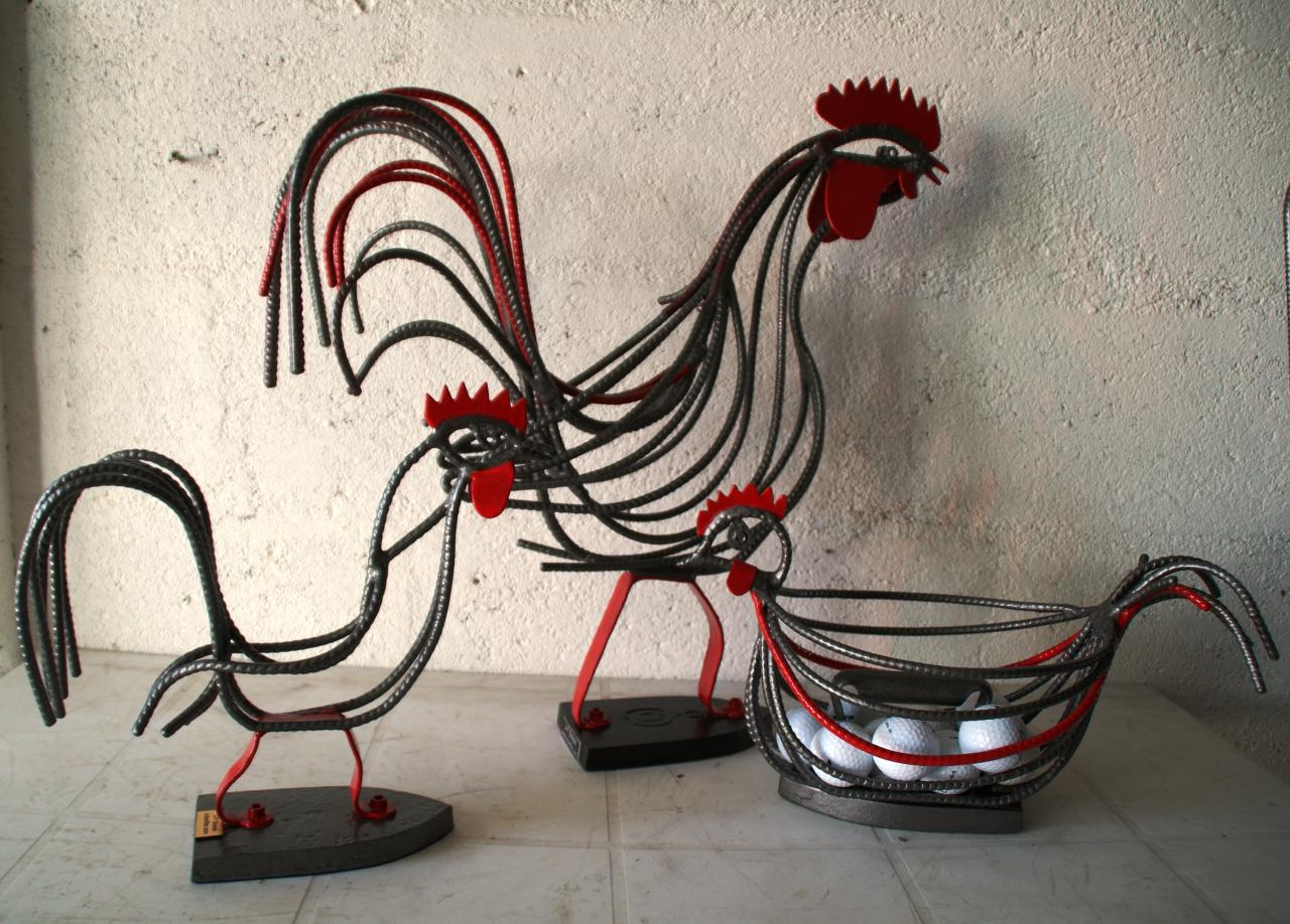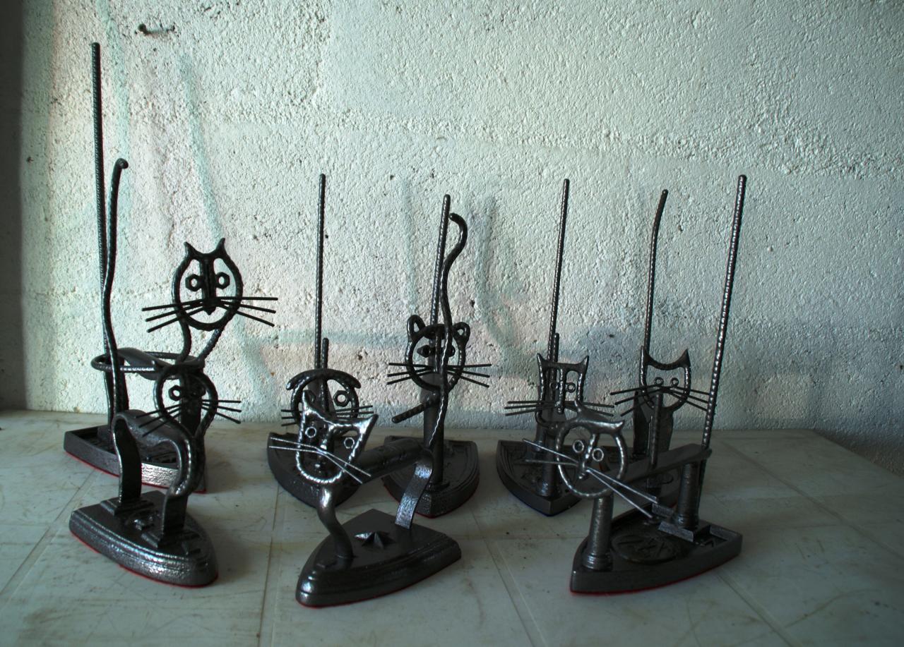 Réalisé avec du fer à béton de 8mm monté sur socle de 20 X 13cm. Haut totale 52cm, peinture noire. Prix: